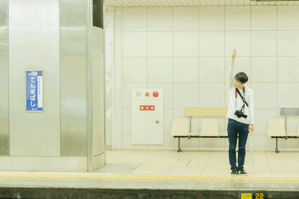 アイコン_ちゃんイワ「次は、天満橋!あ、特急来た!」
