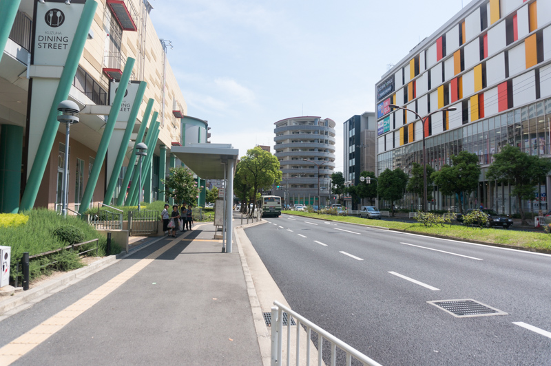 くずはモールのダイニングストリートと南館ヒカリノモールの間にある「くずはアベニュー」という通りを東(楠葉駅とは反対側)へ歩きます。道の左側に見えるのは京阪バス「くずはモール」。
