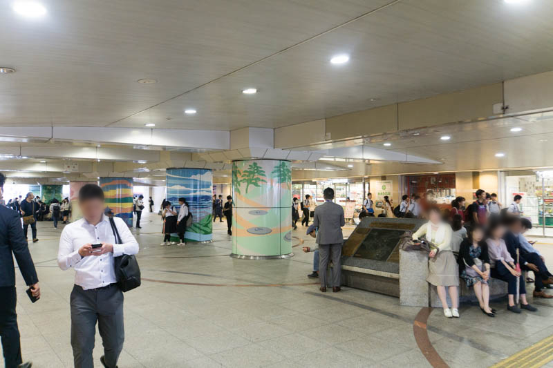駅前の広場では都会の昼休みみたいに、サラリーマンの方々が座ってご飯を食べている風景が。