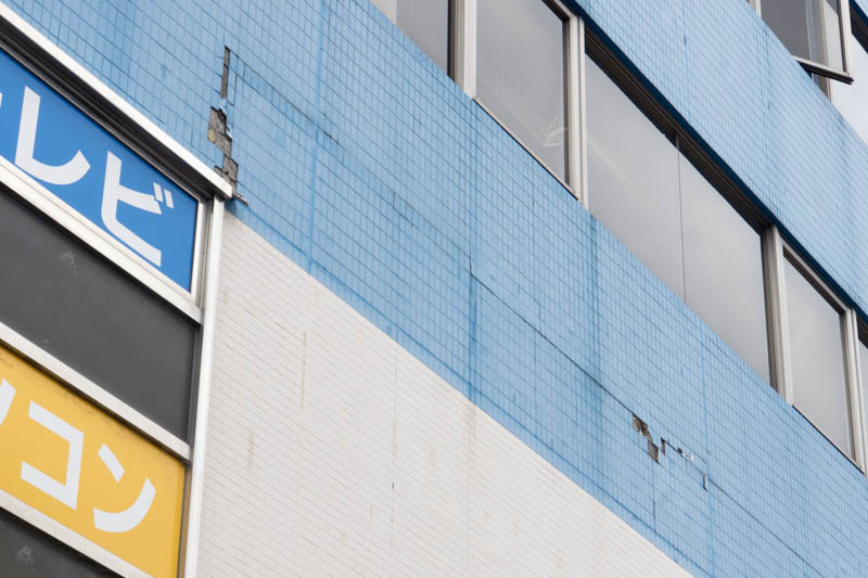 枚方公園駅の近く。瓦が割れた模様。