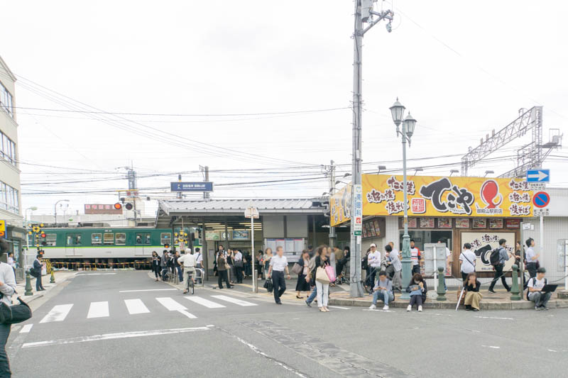 踏切は鳴り続けて混雑状態。