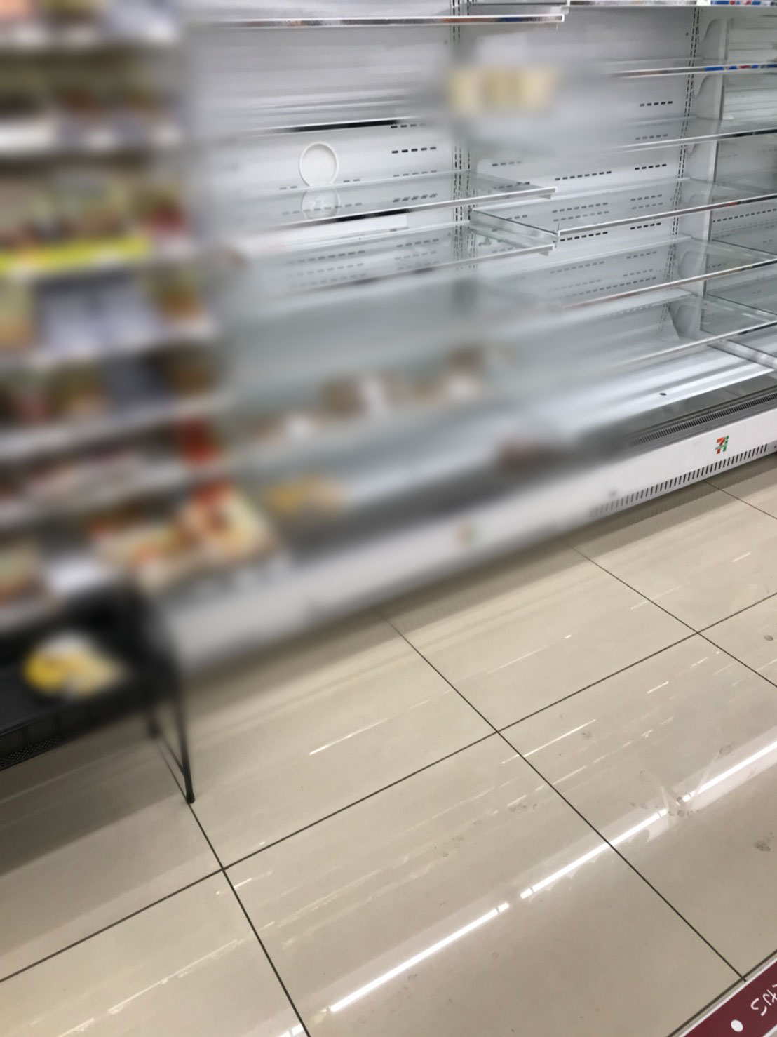 お話を伺ったところ、水が一瞬でなくなって、飲料、カップ麺、缶詰等が売り切れになっているそうです。