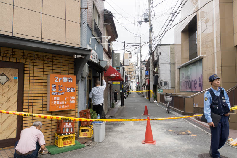 樟葉駅そばの馬渕教室にもなにか落ちたようで、いまから通行規制が行われるようでした。