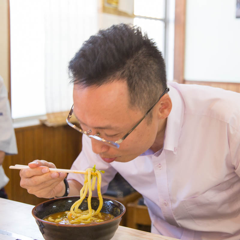 カレーうどんを食べる専務。