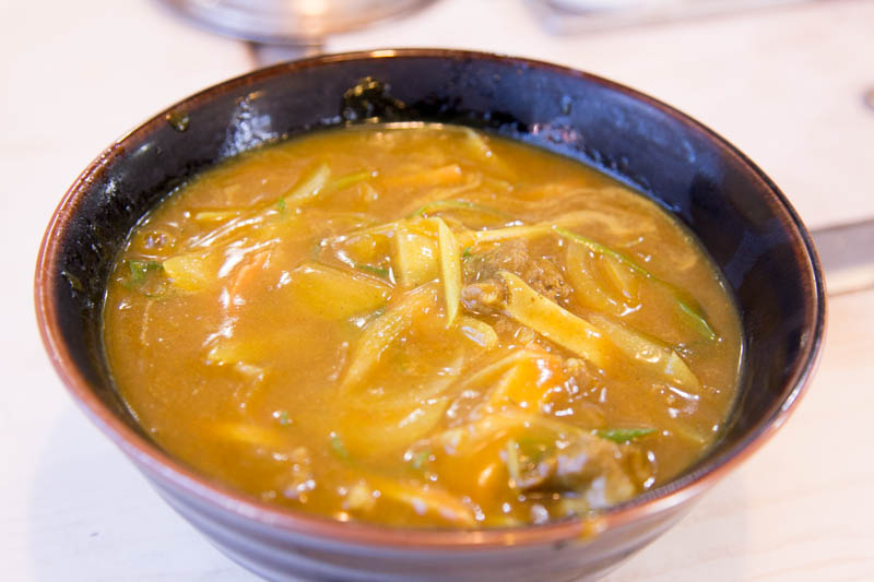 カレーうどんを食べながら