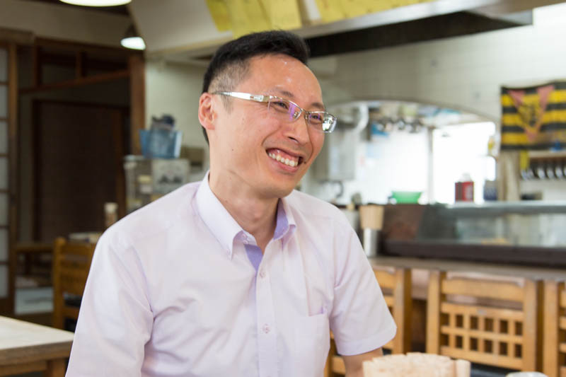「男前に撮ってや!」と萬ぷくの大将。