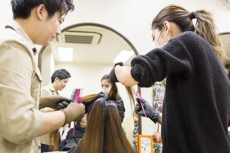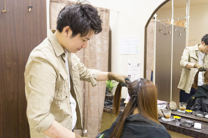 決して便利な場所にあるとはいえないお店ですが、リピーターと口コミで開業12年になる今も客足は絶えず、カラー・エクステ・縮毛矯正を目的に福井、名古屋、和歌山、三重からもお客さんが来るんだそう。