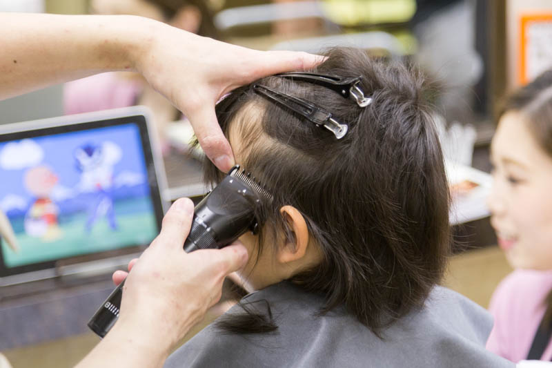 ママの要望で横のボリュームを減らしてほしいとのことなので、バリカンで剃ってツーブロックに。