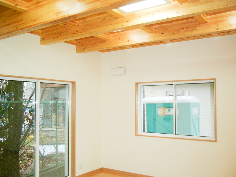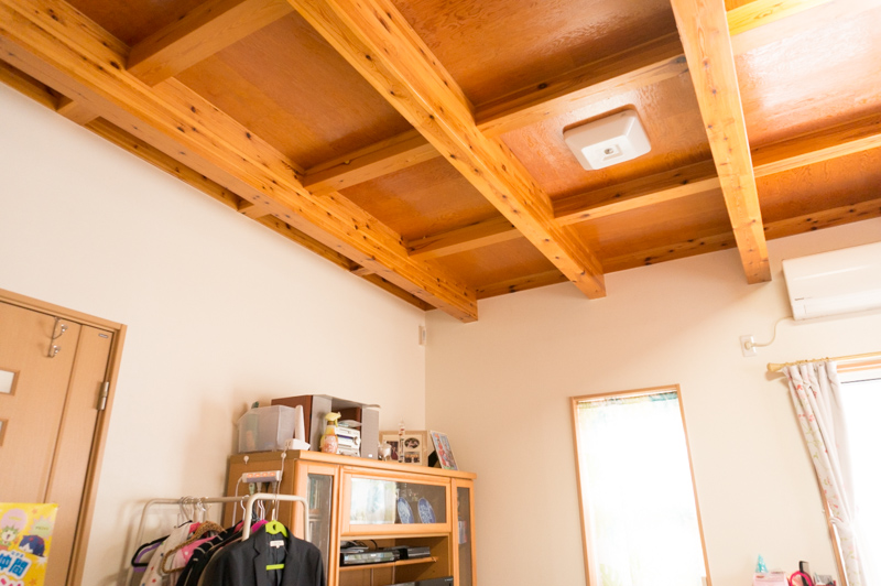 ありさ住宅の社長のこだわりで、このような天然無垢の木の梁が格子状になっています。