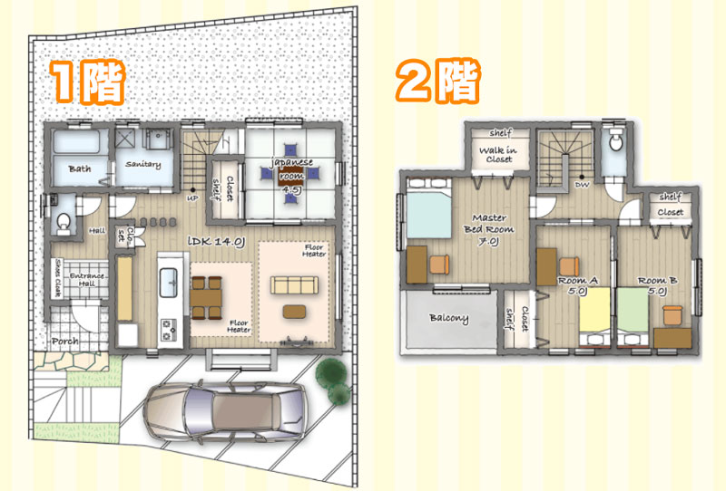 間取りは家族構成や生活にあわせて自由に設計することができますよ!