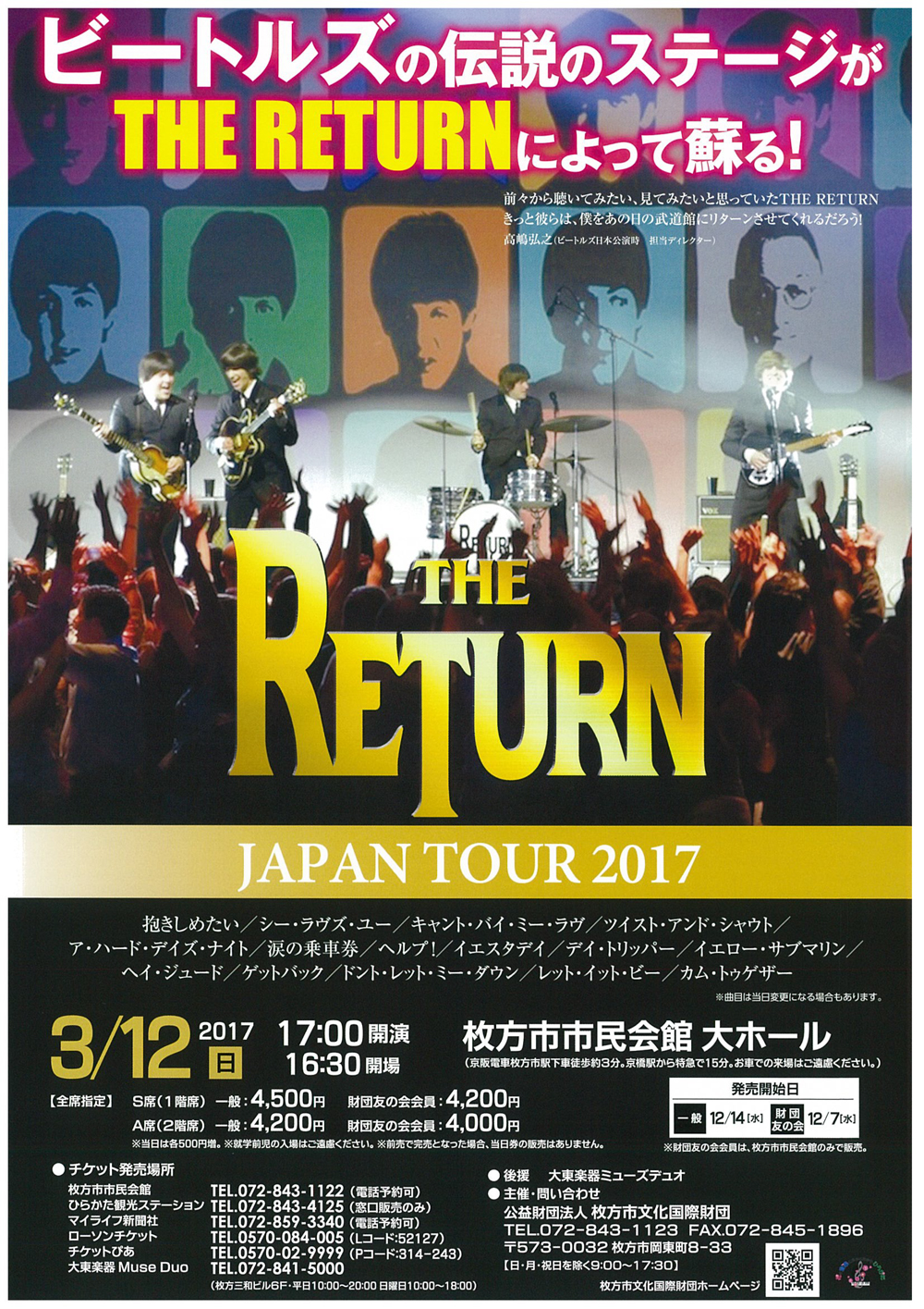 ビートルズに最も近いと言われている世界的トリビュートバンド“THE RETURN”によるコンサート。