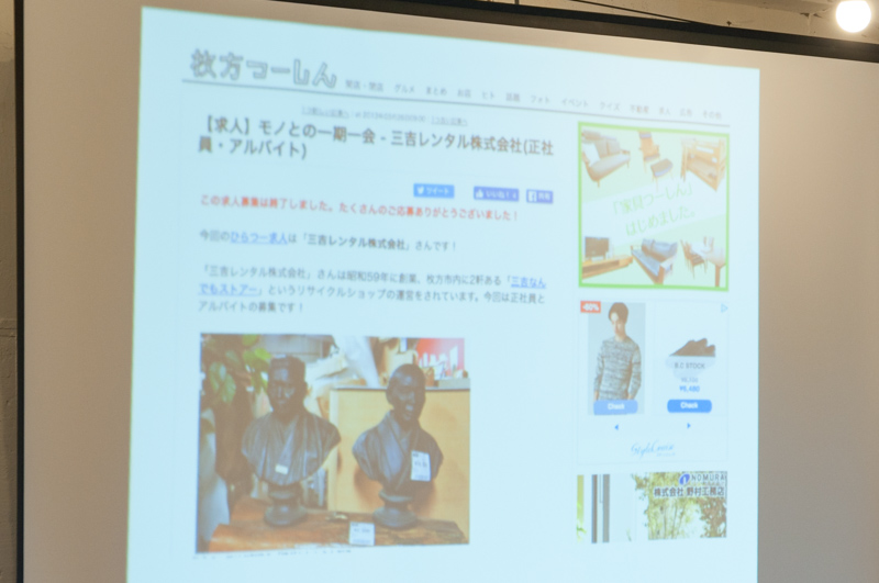 ネットショップだけでなく、枚方から大阪市内に買い物に出かける際にも、皆さん1000円相当の交通費や時間のコストを払っていますよね。『この商品が欲しい、ここで買いたい』とさえ思ってもらえれば送料はそこまで問題にはならないと思います。」