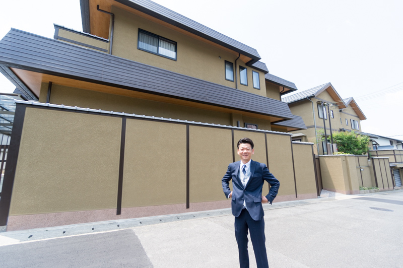 右側にあるY様の自宅と合わせ、外壁の色や瓦を施した塀をつけ、一体感をもたせています。