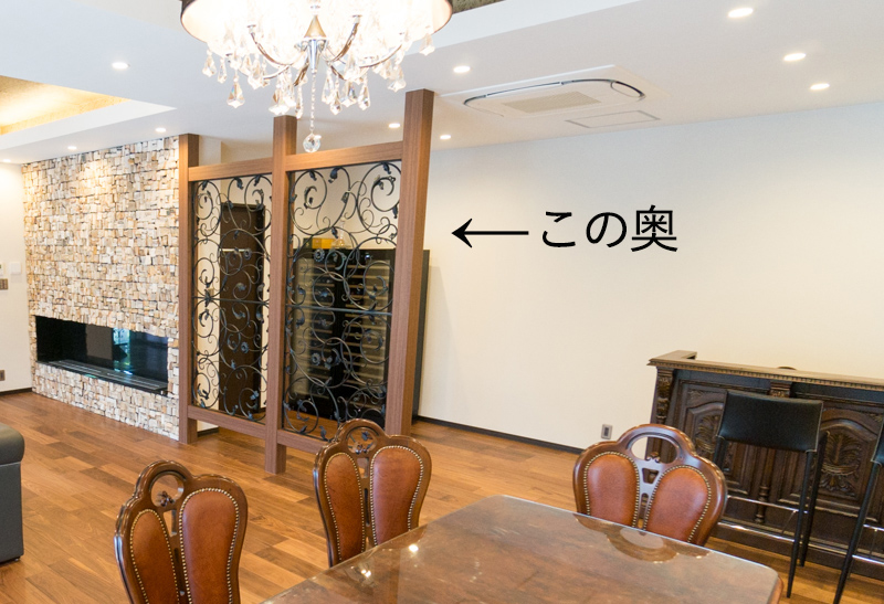 こちらのトイレは、先ほどの暖炉のちょうど裏にあたる位置にあります。