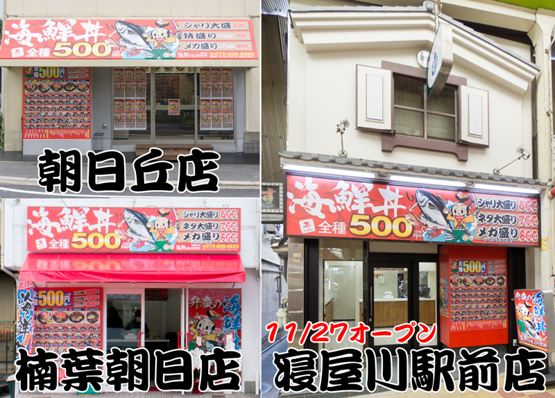 実は大阪市内の堂島に本店があり、2017年9月に朝日丘店、2017年11月に楠葉朝日店と寝屋川駅前店がオープンしている、今脂のノッている海鮮丼専門店です。