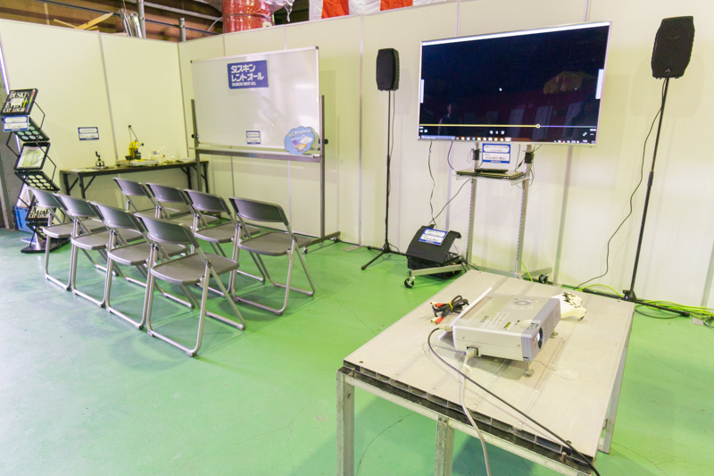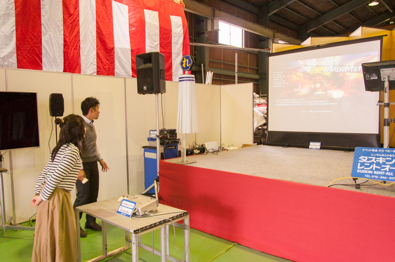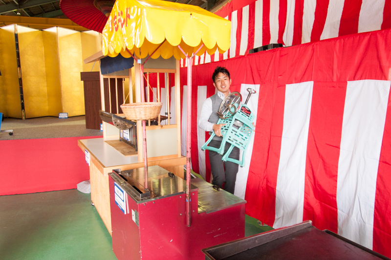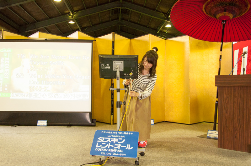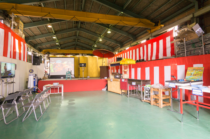 カラオケセットや司会者台、のだて傘に金屏風まで