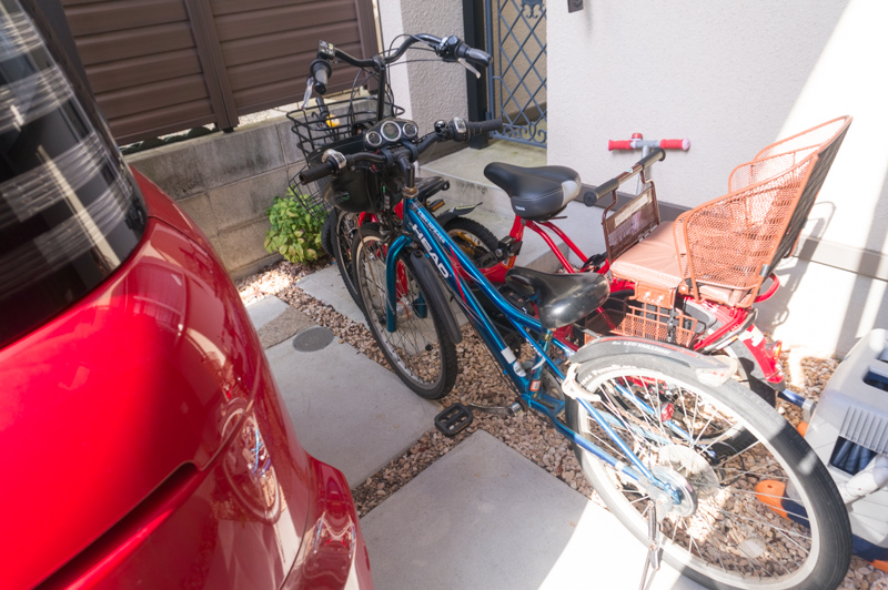 これまでは、自転車はこのように車のガレージ後ろに駐輪してました。