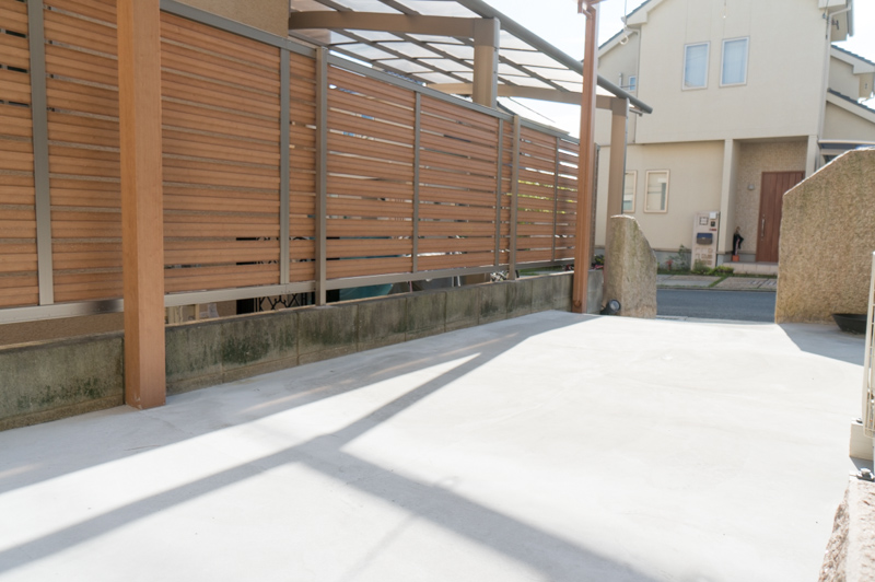 植栽がなくなり、外から見えすぎるのを防ぐため、塀も設置しています。