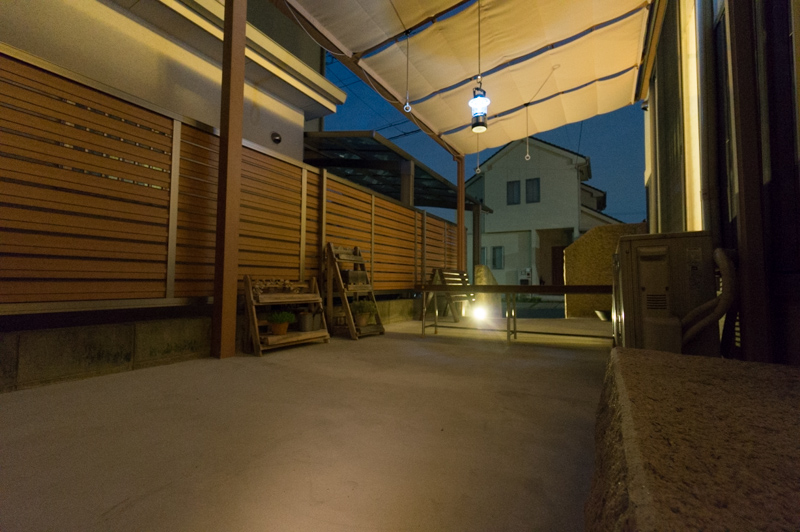 これからはキャンプ用品もリビング側の大きな窓から車に出し入れできるし、テントもテラスで干せるし、立水栓でアウトドア用品を洗ったりも出来ます。