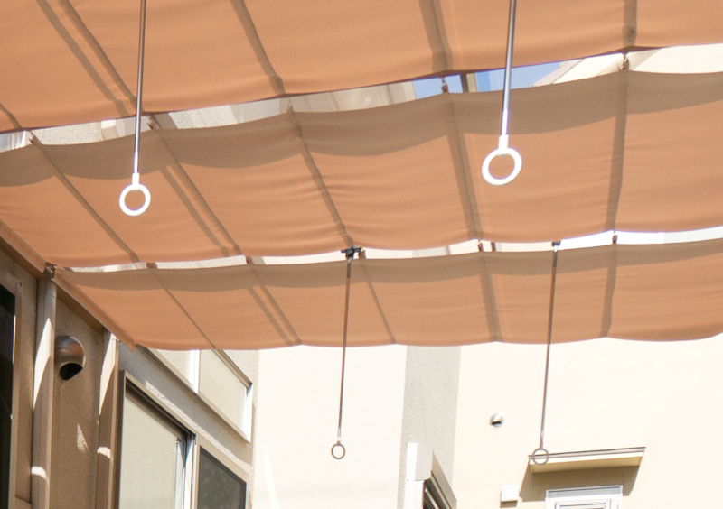 よく見ると、テラスの上部から、輪っかが4箇所に降りてきてます。
