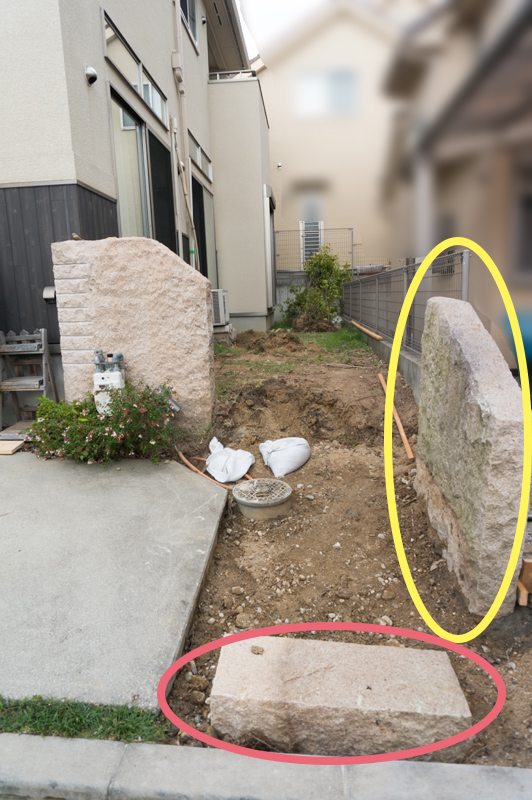 ピンク丸で囲っているのは、植栽の奥に埋もれていた四角柱の岩です。