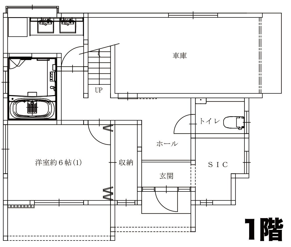 こちらが1階の間取図。では玄関から見ていくことにしましょう。