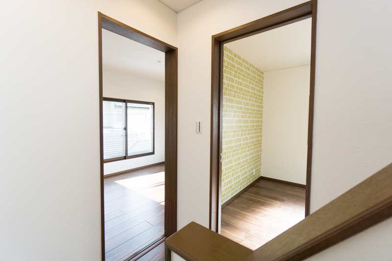 階段を登りきってやってきたのは2階。まずは右の6帖洋室を見ていきましょう。