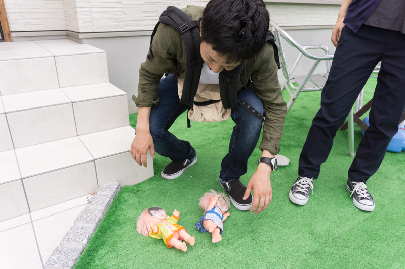 先輩(カトゥー・すどんに似た)赤ちゃん人形を落として焦っている様子(笑)