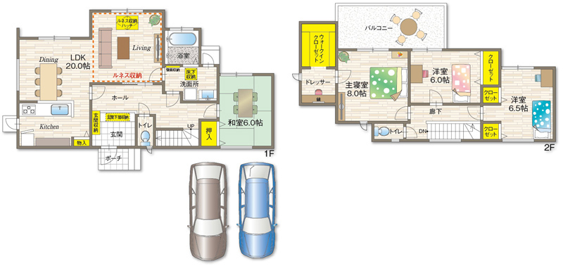 大型床下収納「Renaceルネス」の収納量は、ダンボール約80個分、2tトラックおよそ1台分に相当します。