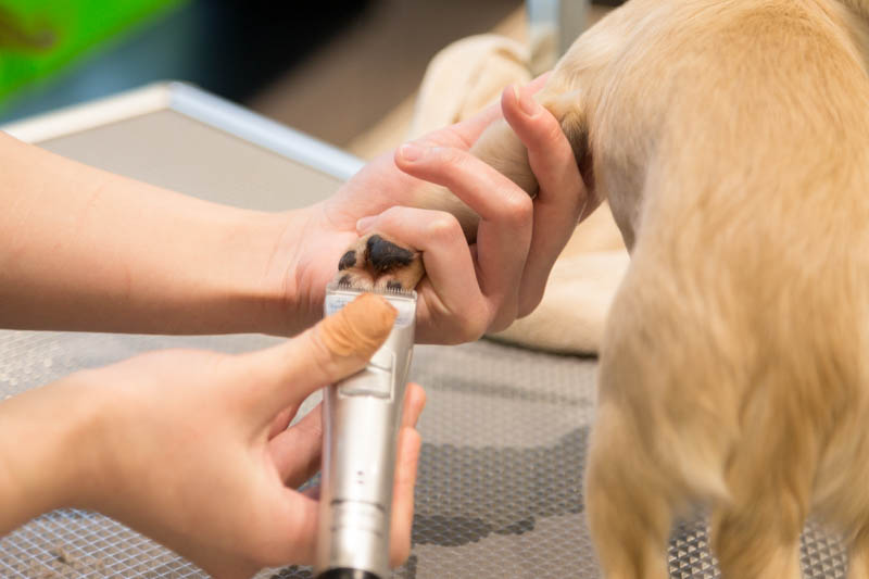 爪切り、爪やすりが終わったら、足裏バリカンです。