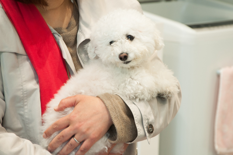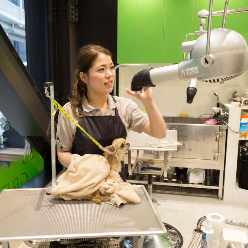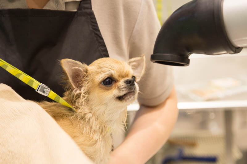 「お家ではドライヤー嫌がって大騒ぎなんですよ…。大丈夫かな。」