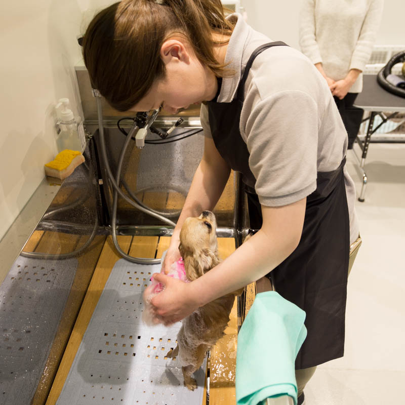 爪切り・足裏カット・肛門腺しぼり・シャンプー&ドライ・足回りカット・耳掃除・犬種によってはトリミングも行います。