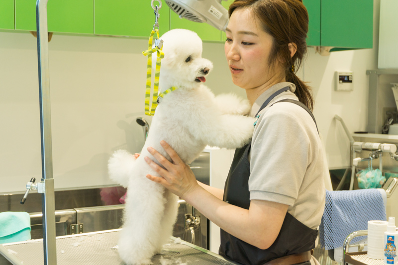 専門学校を出てGREEN DOGで働いていたが、海外でやってみたいという想いがありカナダで1年トリマーを経験。帰国後にまたGREEN DOGに戻ってきて欲しいと声をかけてもらい、今に至ります。