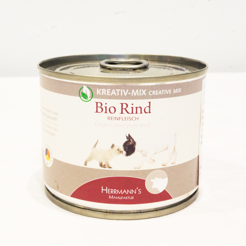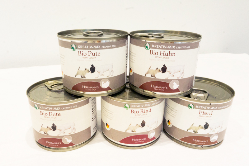 先ほどご紹介した缶詰、ビオ・クリエイティブ・ミックスと違って野菜やハーブなどが含まれているので、ワンちゃんの体調や好みに合わせてチョイスできます。」