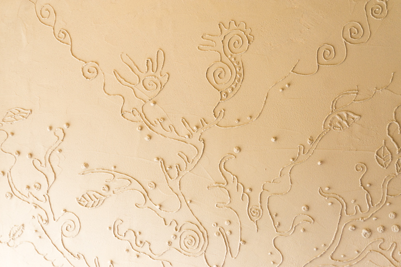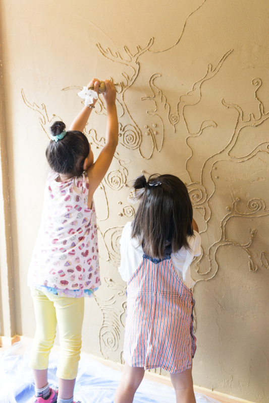 壁全面に珪藻土を塗る+3人のアーティストさんに壁に絵を描いてもらう+参加者さんにも葉っぱを描いてもらう、などなんとも楽しいイベントになりそう♪