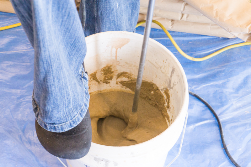 まずは「ひしゃく」でバケツに入った出来立ての珪藻土をこて板に載せます。