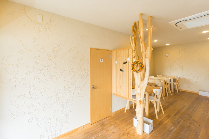 実は、2014年のオープン当初に店舗デザインをお願いされたのもgreen建築工房の松村さんだったのですが、当時から珪藻土の壁にしたかったそう。でも予算の都合で断念することに。