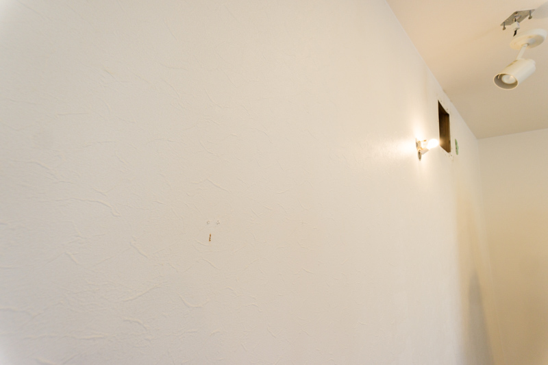 もともとは真っ白のクロス(壁紙)でした。よく見ると凹凸があって「しっくい風!!」のクロスと言う感じ。これでも全然大丈夫なのですが・・・