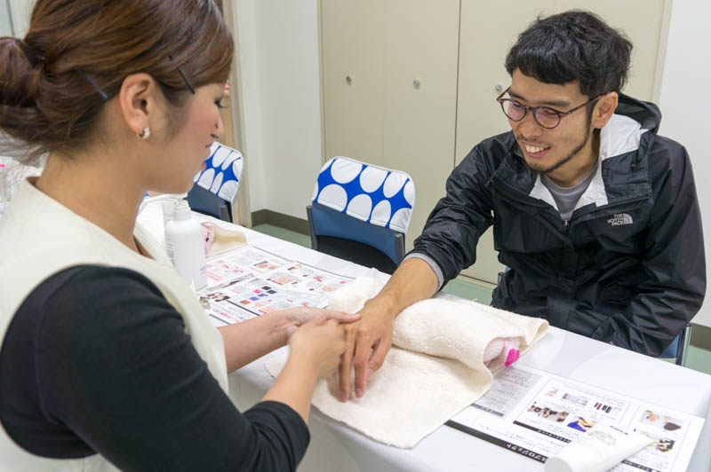大人の皆さんはハンドエステやスキンケアチェックを体験してみるのはいかがでしょうか?(写真は昨年取材に行ったシュン@ひらつー。男性も体験可能です!)