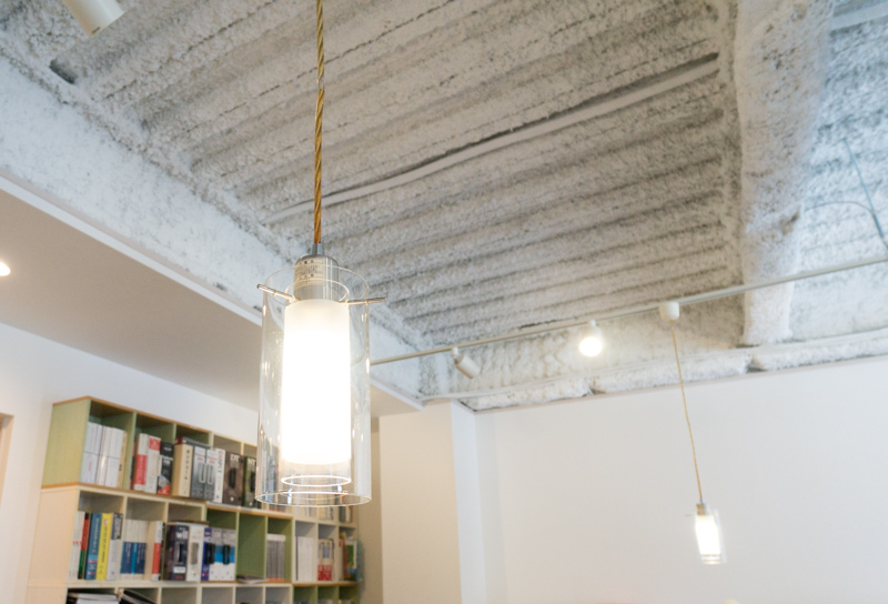 わざとむき出し風に施工してある天井、そしてデザイン性のある照明