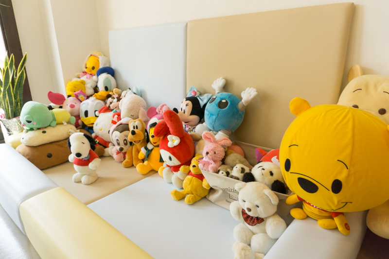 店内のキッズコーナーには、野見山店長が買い揃えたぬいぐるみがたくさん