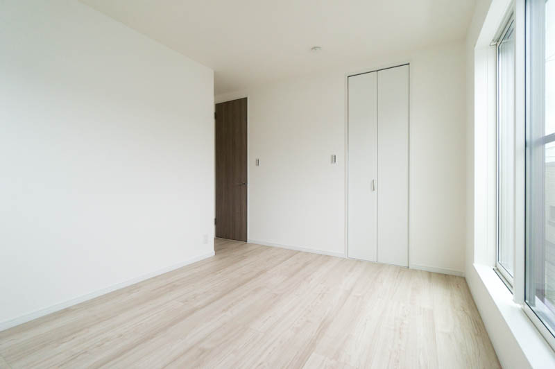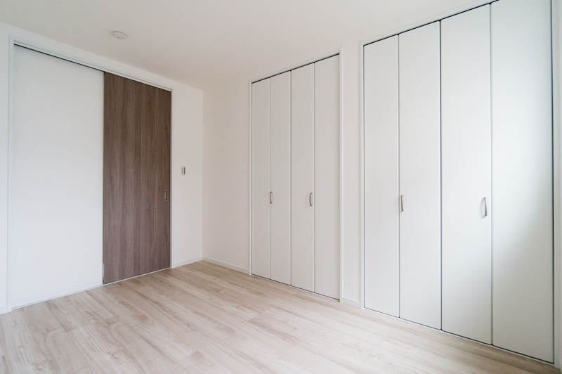 コチラの壁は一面クローゼットになっており収納力抜群!