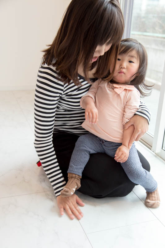 娘のふみちゃんは寝起きだったのでちょっと緊張気味…