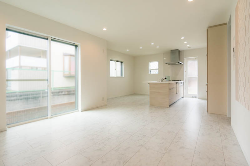 白を基調とした広々LDKは清潔感があって明るいですね。