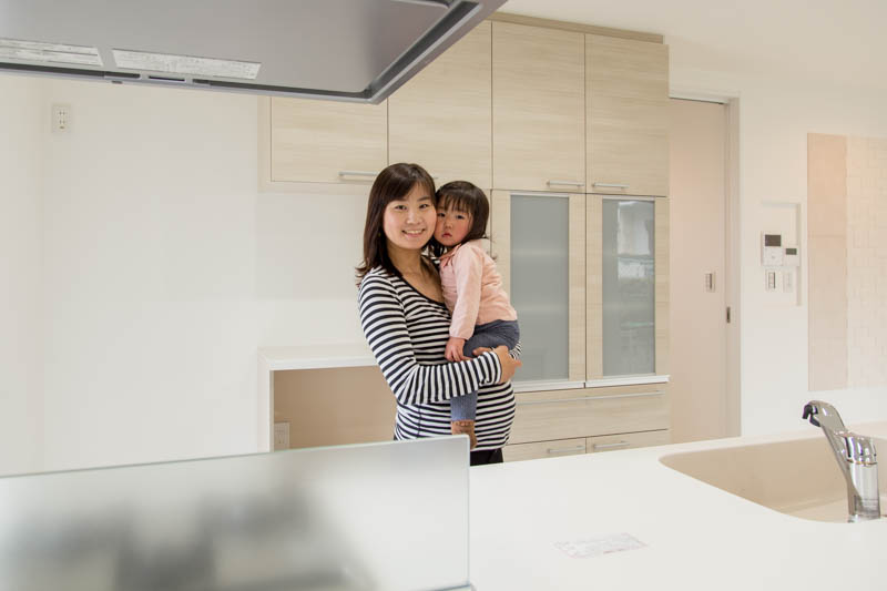 ママ「キッチンも広くて動きやすい。カウンター越しにダイニングやリビングを見渡せるのも嬉しい!」