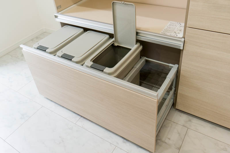 棚の引き出しにはゴミ箱を隠しておけるので見栄えもバッチリ!