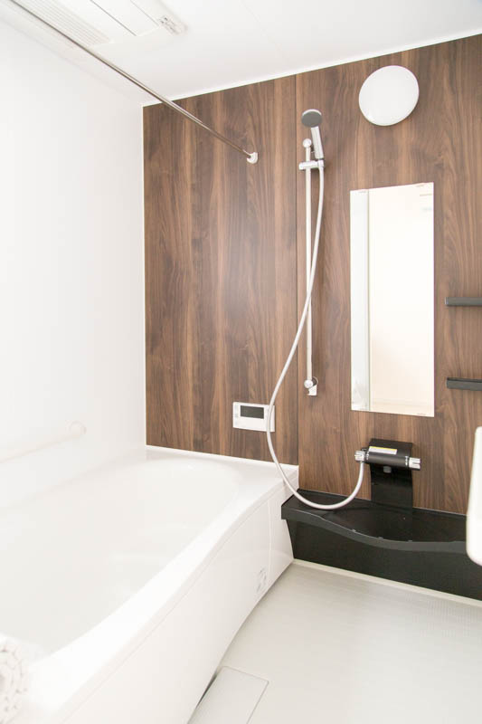お風呂も木目調のシックなデザインで落ち着くなぁー。