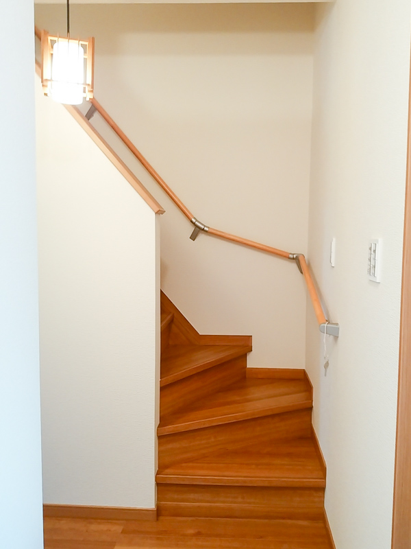 手摺りに樹脂製の板(ティンバー)を施工することで和の雰囲気がアップしています。