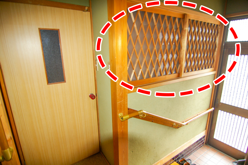 実は以前の玄関の右側にあった窓を移設したものなんです。