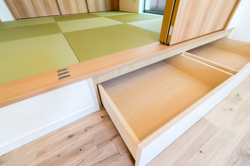 ー 床から30cmほどの高さに和室を設置しているので、たっぷりの収納スペースとしても活用でき、